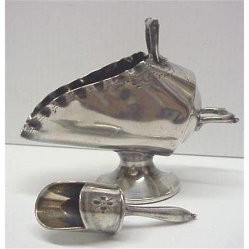 Only in Victorian times would they think to create such uncommon set to serve sugar, Dimpled edge with wonderful etchings, two lovely handles, high pedestal and the ctest tiny scoop, It is silver plated with markings: EP BM.- Ecellent condition for the item of this age, it does shows few dents and scratches on each side otherwise very solid and beautiful. US Buyer please pay 7.00 plus insurance.Thank You for looking!
