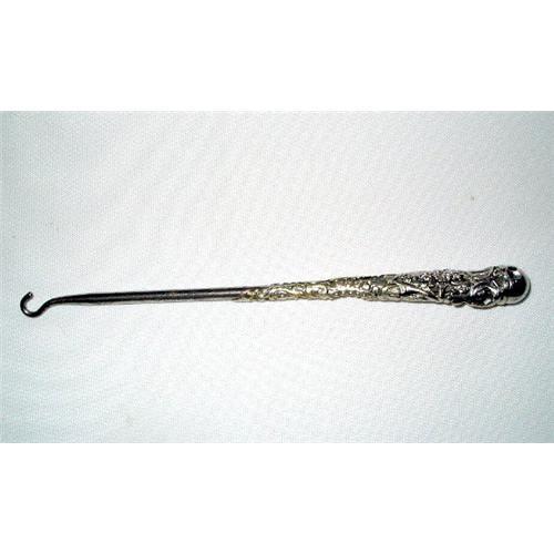 <tr><td>Title:Victorian Silver Plated Ornate Button Hook</td></tr>
