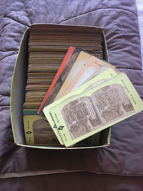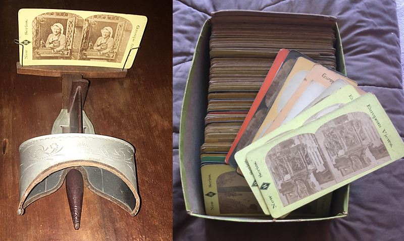 Victorian stereograph viewer and nice collection of stereograph cards.