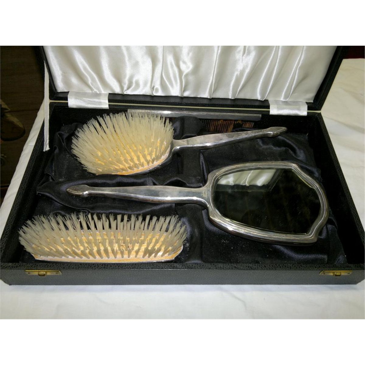 Victorian Sterling Brush, Mirror, comb vanity L 14 W 9 h 2.5