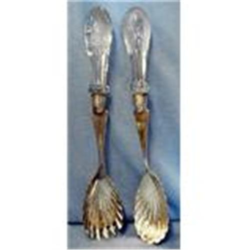 Silver & Crystal Salad Servers - Pair Victorian Cut Glass. When only the best will do... fine Victorian serving pieces. Each has a single hallmark of a person drawing back a bow & arrow, within a full shield. Plus LG&Sons.