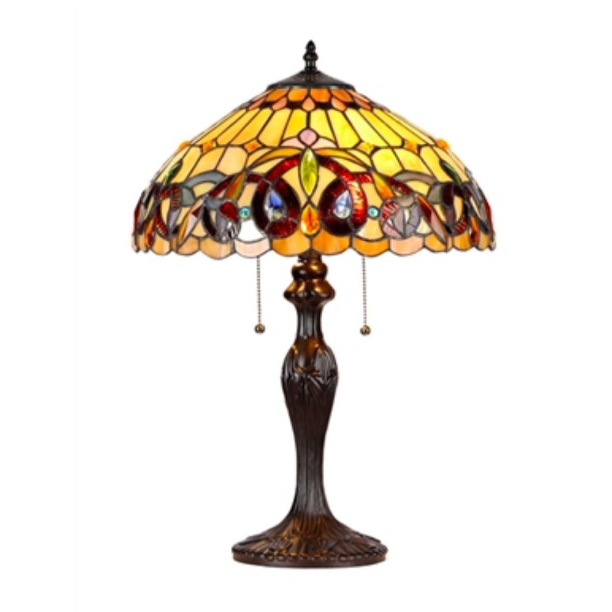 Victorian-style 2-light table lamp, created using over 400 pieces of stained art glass, glass beads & crystals, wrapped in copper foil with dark antique bronze finish. 22 1/2" H X 16" W shade.Â