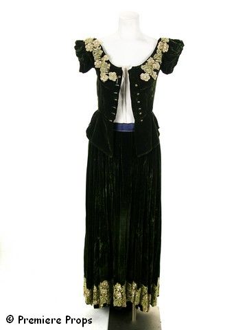 From New York Costume Designer Frankie Steinz: Victorian style velvet dress with floral lace trim; Corset style bodice with floral trim (extra small, wouldn't fit any mannequins); velvet skirt with flower trim
