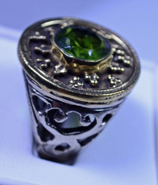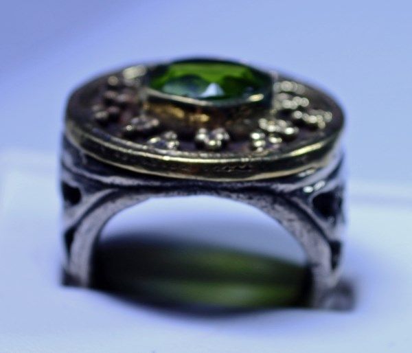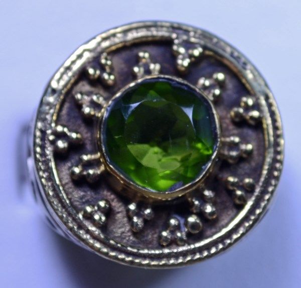 Victorian Style German silver ring with Green Stone, Size 7 1/2