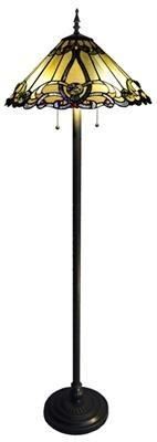 Victorian style 2-light stained art glass floor lamp, created with over 325 pieces of stained art glass & 86 glass beads, wrapped in copper foil, in green yellow & blue colors. 63" H. 18" W shade.