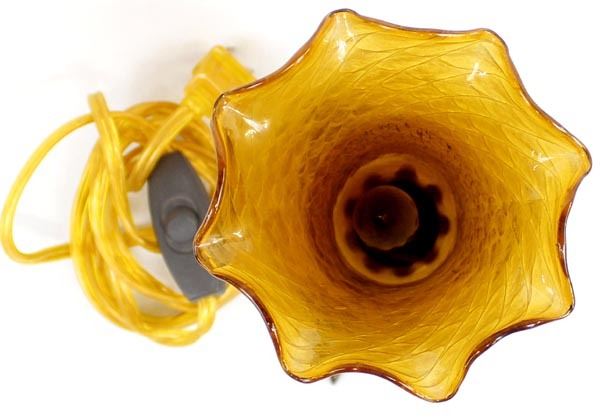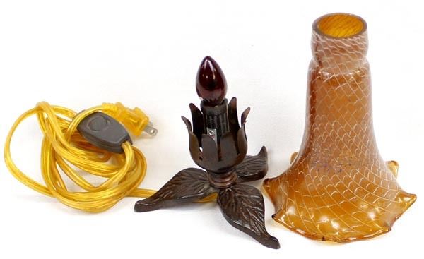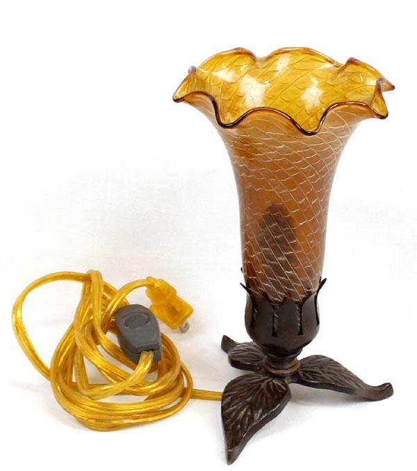 Victorian Style Trumpet Glass Lamp, metal base, measures 4.5'' x 8''