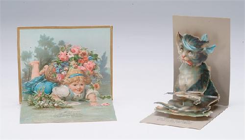 A group of 8 three-dimensional greeting cards mostly German and some others. Excellent examples of chromolithography circa 1880's.