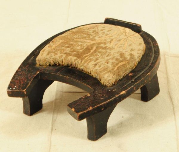 Has Edlen Studios R. & M. Dauphin, South Street, Norwell Massachusetts shipping label affixed to bottom of stool. Measures 12" wide x 14" long x 7" tall.