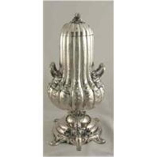 An example of Victoriana at its height!! A Huge Acorn shaped urn. In working order,this item does not leak. Loss to plate on lid that could be "spot plated" No loss of plate elsewhere. A very old repair at the base of the tap or spigot. The lid is hinged and attached. The handles are heavily decorated where they meet the body of the urn. The whole piece is a fluted acorn shape. More pictures available, please ask. Buyer to pay actual postage for a parcel weighing 8lb packed, insurance and delivery confirmation a must.