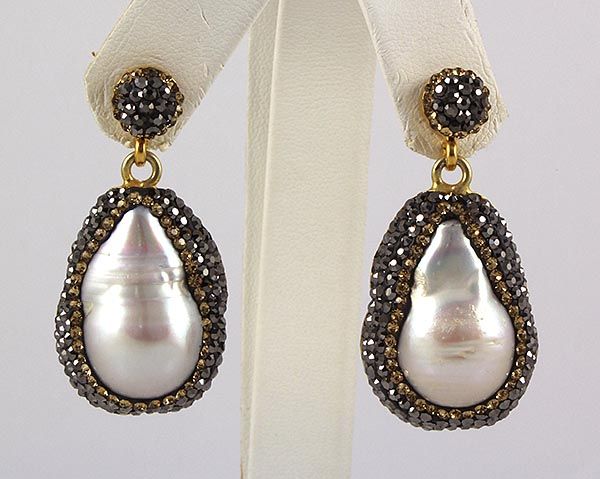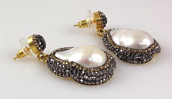 15.56g Victorian Design Mother of Pearl Earring w/ CZ diamonds; 925 stamp gold plated