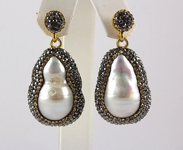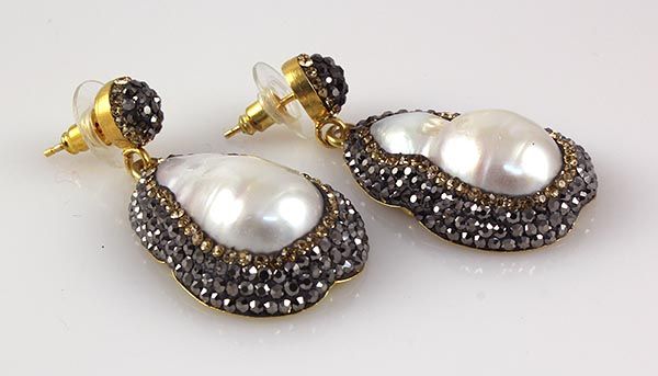 Victorian Vintage Mother of Pearl Earring **|**|** 17.95g Victorian Design Mother of Pearl Earring w/ CZ diamonds; 925 stamp gold plated ; MSRP: $100