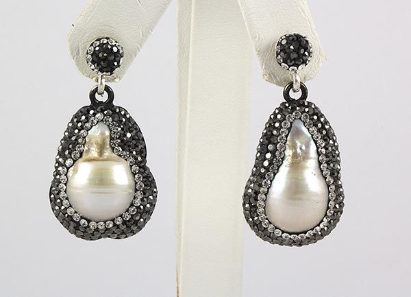 Victorian Vintage Mother of Pearl Earring **|**|** 14.22g Victorian Design Mother of Pearl Earring w/ CZ diamonds; 925 stamp ; MSRP: $100