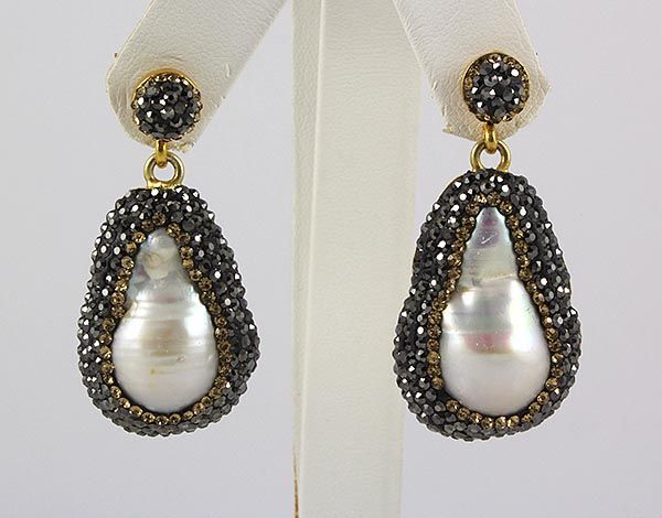 Victorian Vintage Mother of Pearl Earring **|**|** 16.54g Victorian Design Mother of Pearl Earring w/ CZ diamonds; 925 stamp gold plated ; MSRP: $100