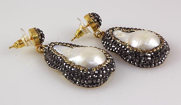 Victorian Vintage Mother of Pearl Earring **|**|** 16.54g Victorian Design Mother of Pearl Earring w/ CZ diamonds; 925 stamp gold plated ; MSRP: $100