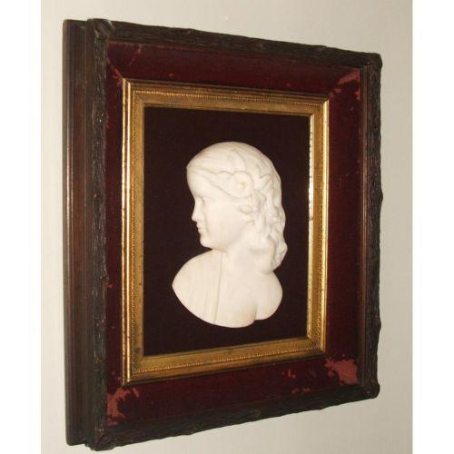 Victorian. Late 19th century. Carved marble. Relief size 9" high. Size in frame 18" high by 16" wide