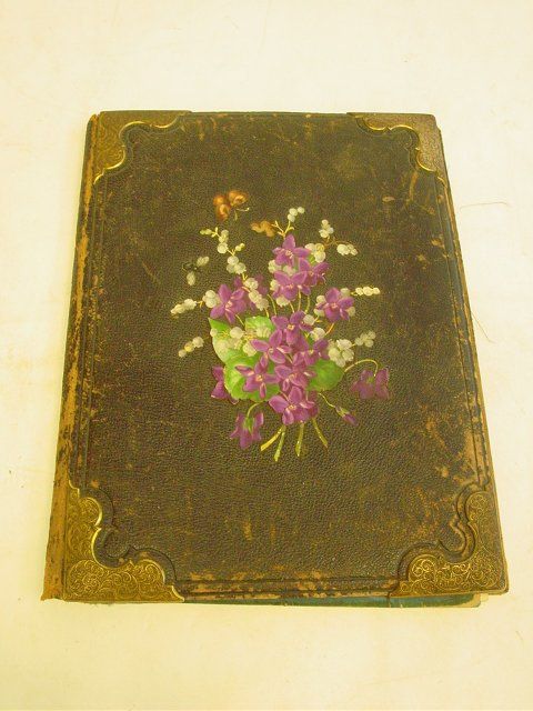 Handpainted, leather, bronze mounts. Approx. 13" x 10". Please read our terms of sale.