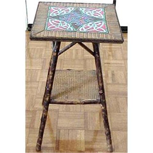 English Victorian bamboo and tile top two tier table with a storage shelf.