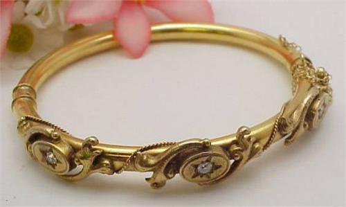 Victorian bangle bracelet with three diamonds approx .24Ctw 14kt yellow gold (not stamped acid tested) 16.0gr