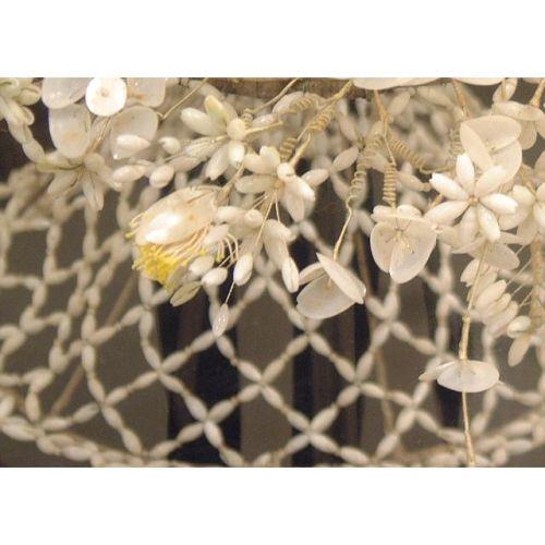 Victorian brides basket made from shells in glass dome. This brides basket is truly amazing. A tremendous amount of time and labor went into making this delicate object. The detail is superb. The flowers look so naturalistic you can almost smell them. The basket measures 13 inches by 12 inches and the glass dome measures 16 by 14 inches. Excellent condition.