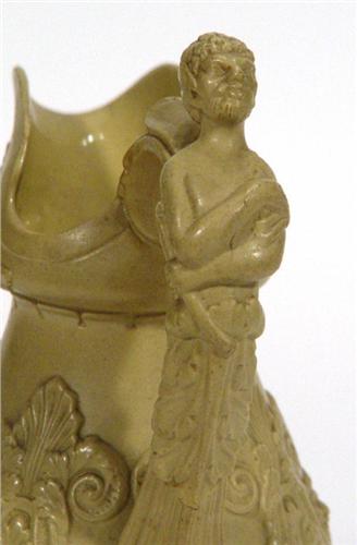 Victorian brown stoneware jug with Pan design handle and relief moulded with a band of griffins and
