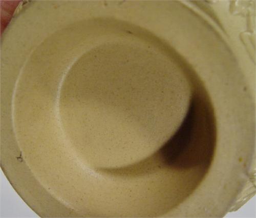 Victorian brown stoneware jug with Pan design handle and relief moulded with a band of griffins and grapevines, 15cm high