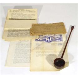 Victorian carved treen toddy ladle with letter from the Burns Club of London, reputedly owned by Robert Burns and passed down through the family