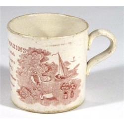 Victorian children's mug, transfer printed with a red transfer 'Dr Franklin's Maxims', 7cm high