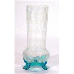 Victorian clear and opaline glass vase with blue pressed glass feet, 21cm high
