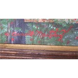 Victorian cross frame oil on board, SLL Arnold Martinez, 26" W x 26" tall