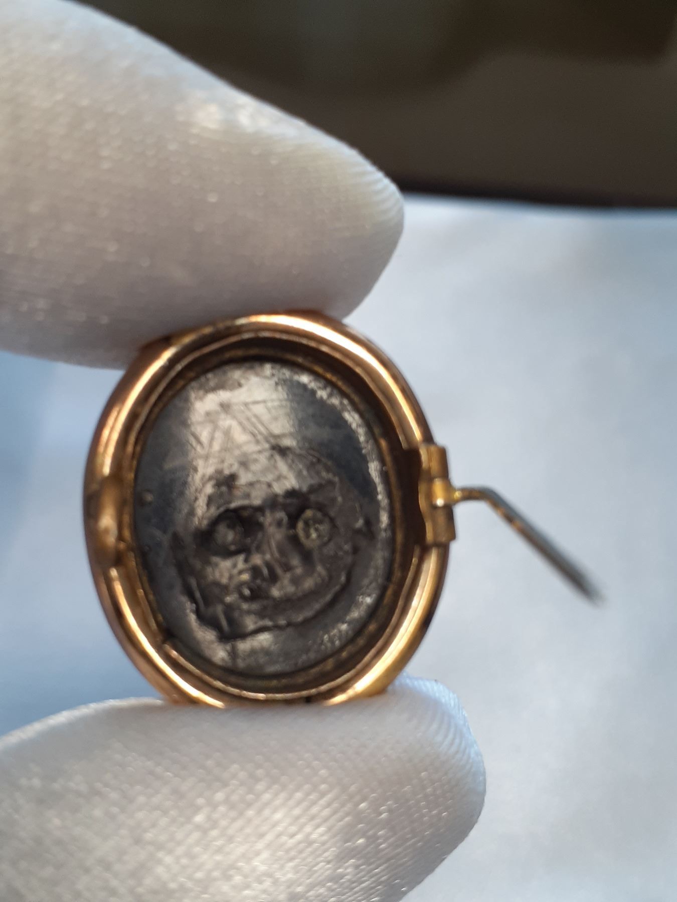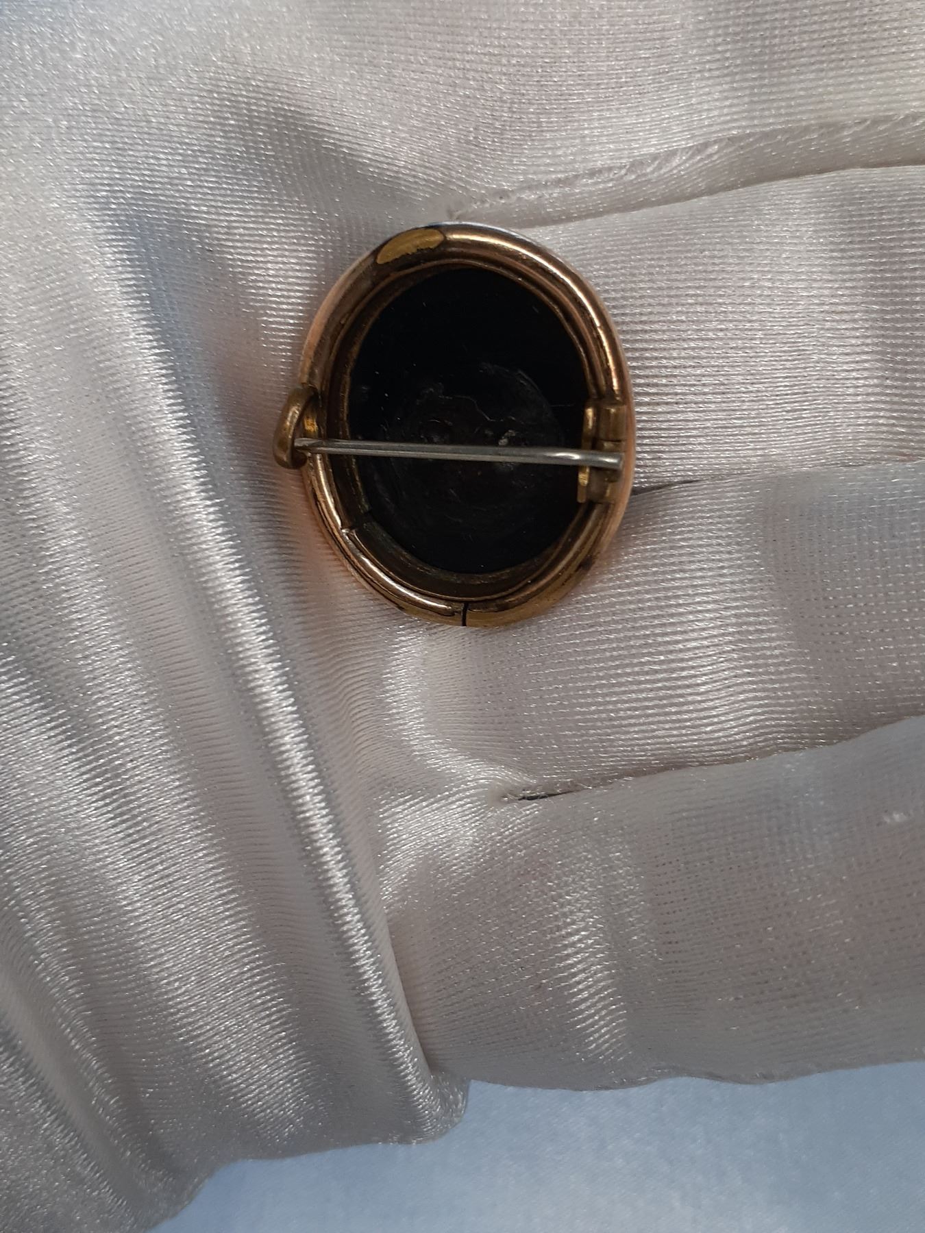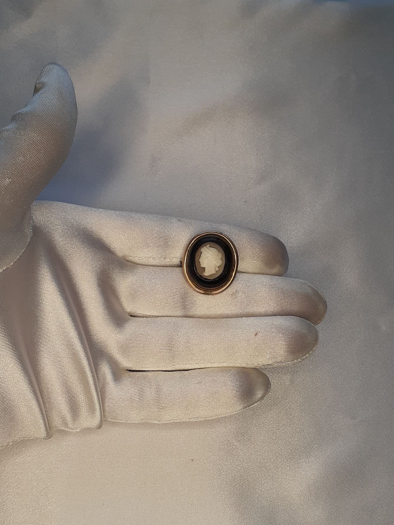 Well hand carved shell cameo mounted in get and gold plated pinchback