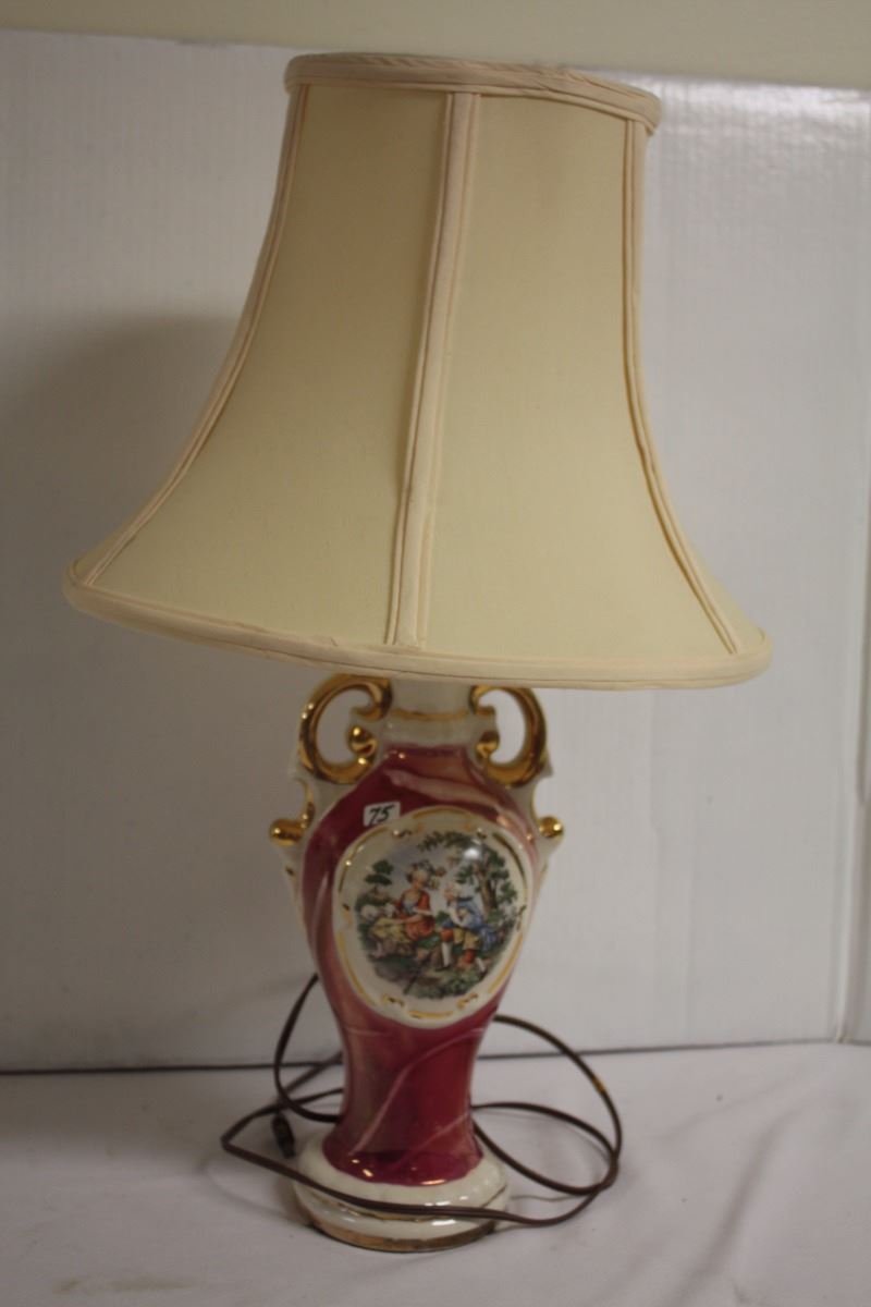 This is a Victorian electric lamp with the original shade