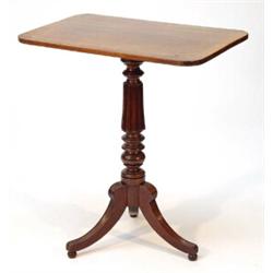 Victorian mahogany and cross banded snap top wine table on reeded turned supports and outswept legs