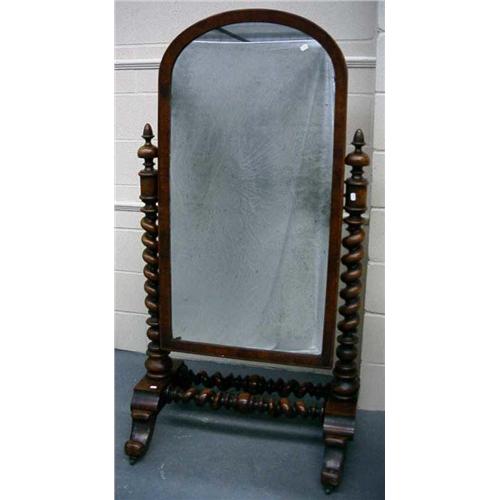 Victorian mahogany cheval mirror on barley twist supports - illustrated