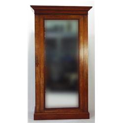 Victorian mahogany linen cupboard fitted a mirrored door enclosing four sliding linen shelves on a plinth base with label for T.H.Filmer & Sons, Oxford Street, London