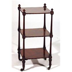 Victorian mahogany three tier whatnot with fluted supports and roundels on brass casters…