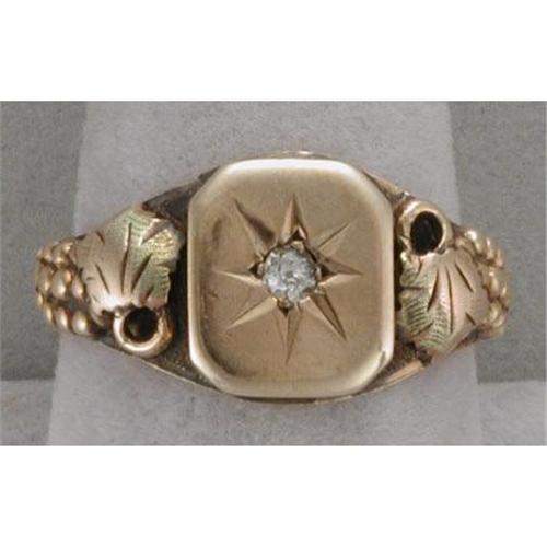 Nice rose gold (10K, unmarked, but tested)Victorian ring, set with an old mine-cut diamond estimated to weigh approximately .10 carat. Grapes and grape leaves trail down the shoulders of the ring. It is a size 10 and weigh 5.9 grams.