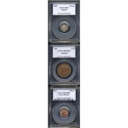 Victorian quartet: 1869 3d S-3914C MS64 PCGS; 1839 Groat S-3913 MS64 PCGS; 1853 Sixpence S-3908 MS64 PCGS; and 1894 Shilling S-3940 MS64 PCGS. Attractive and tightly graded. (Total: 4 coins)From the Craig Haller Collection. Important notice: Heritage usually auctions material at the rate of 200-250 lots per hour. On some occasions eBay Live bid software or the Internet may not be able to keep up with the pace of the auction. We recommend placing a realistic absentee bid now as insurance to avoid disappointment. Occasionally the auctioneer may eliminate or reject an eBay Live bid, and the auctioneer may also reopen a lot after the close of the eBay live bidding (usually because we missed an audience bid), and may reject your bid even if it shows you as the winning bidder. By bidding via eBay Live, you agree that Heritage may award the lot to another bidder at its sole discretion under the circumstances described above or any other reasonable circumstances. Also please note that all Heritage lots purchased through eBay Live carry a 20% Buyer's Premium. Please make sure you read the Terms and Conditions before you bid.