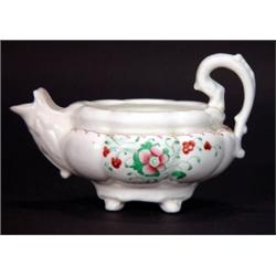 Victorian sauceboat with an ornate spout, hand enamelled with a floral pattern, 16cm in length