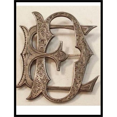 This sterling victorian brooch is so fancy that surely it must have been made to wear on an upper class gentleman's attire! IT is 1 1/2" long and has the initials ED or DE depending on how you look at it. What is unique is that it actually looks 3 dimensional. It is a nice quality piece that has not been polished to protects its wonder patina.