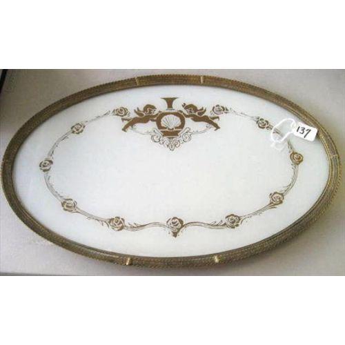 Victorian style gold vanity mirror tray with cherubs 22" x 14"
