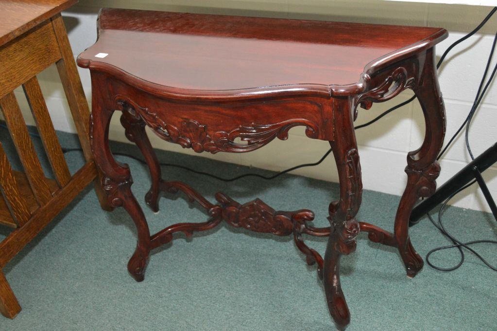 Victorian style reproduction flat to the wall console table with carved decoration