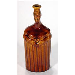 Victorian treacle glazed pottery flask in the form of an old lady with thin neck, 23cm high