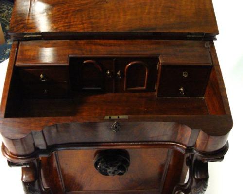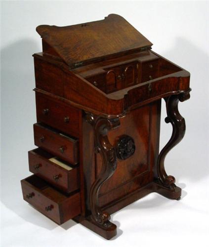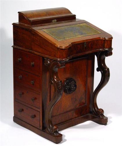 Victorian walnut Davenport fitted a letter rack with hinged lid above a fall with tooled leather top