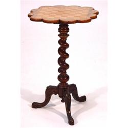 Victorian walnut games table the cloud shaped top on spiral twist column and carved tripod base