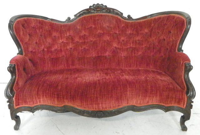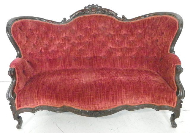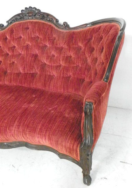 Victorian walnut red upholstered loveseat Please read our terms of sale.