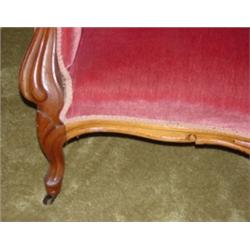 Victorian walnut sofa with red upholstery. Measures approx. 73" long and 38 1/2" tall in back.