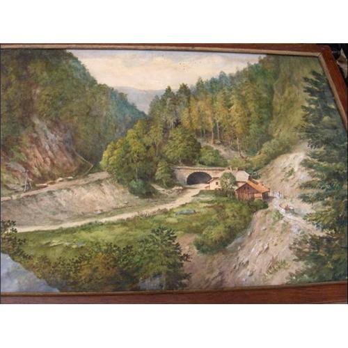 A Lovely watercolour signed LEHALLE.A delightful and very detailed study of a wooded valley with a mill ,barns and beautiful woodland.Nicely framed and glazed.
