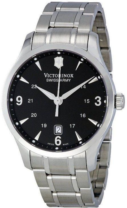 Model: 241473 - CASE = [Material:Stainless Steel], [Case Diameter:40], [Case Thickness:9mm], [Bezel:Fixed Stainless Steel], [Case Back:Solid], [Water Resistant:100 Meters - 330 Feet], [Crystal:Anti Reflective Sapphire], DIAL = [Color:Black], MOVEMENT = [Type:Swiss Battery Powered Quartz], [Crown:Textured Steel], BAND = [Clasp:Deployment], [Type:Stainless Steel], (In Stock - Ready to ship.)
