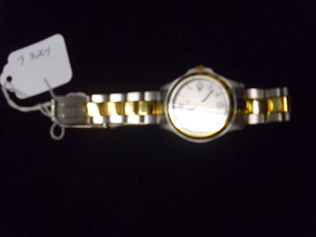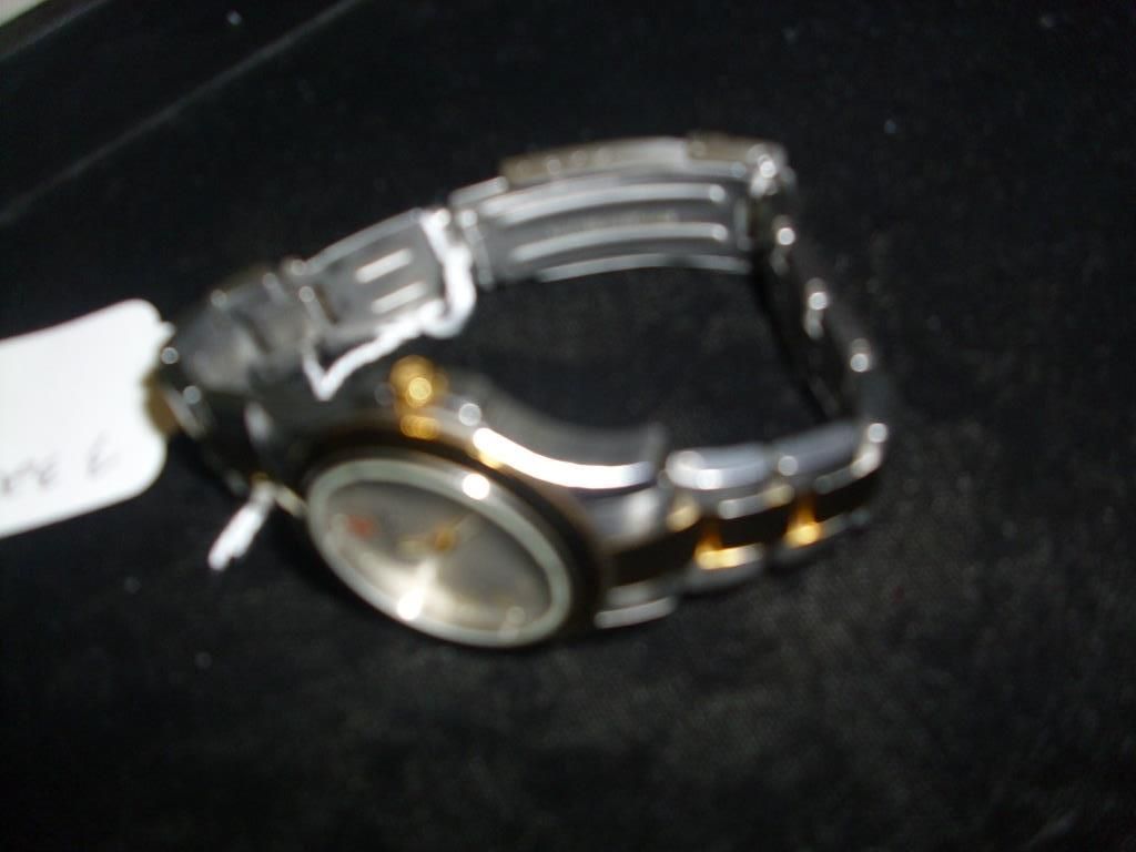 Gold & Silver tone stainless steel back with  water resistant-  has date as well as keeps  time\ trk 14--1983-014
