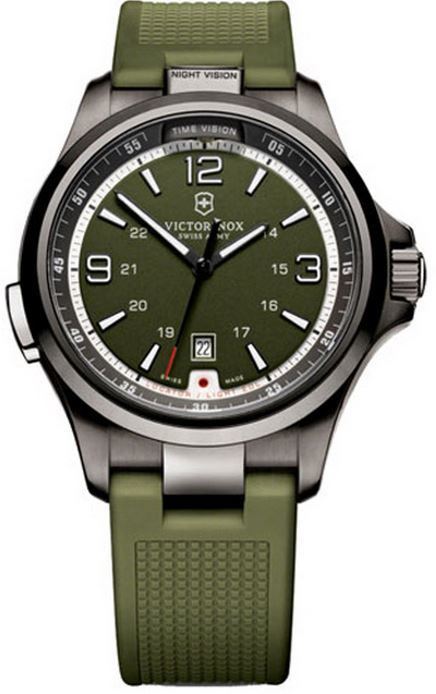 Model: 241595 - CASE = [Material:Stainless Steel], [Case Diameter:42], [Case Thickness:13mm], [Bezel:Fixed], [Case Back:Solid], [Water Resistant:50 Meters/165 Feet], [Crystal:Anti Reflective Sapphire], DIAL = [Color:Green], MOVEMENT = [Type:Quartz], [Crown:Push In], BAND = [Clasp:Tang], [Type:Green Rubber], (In Stock - Ready to ship.)